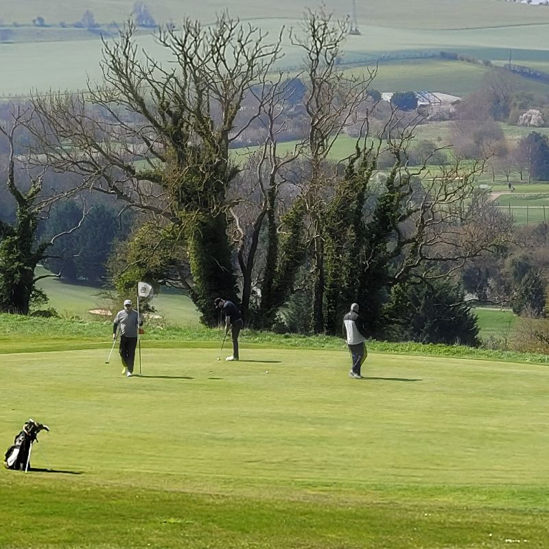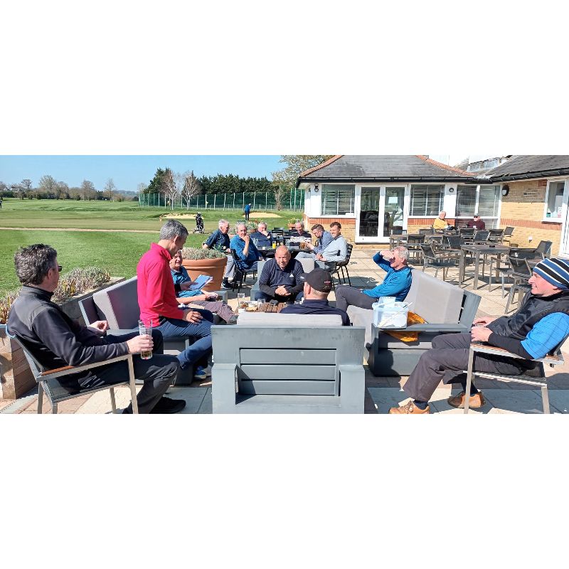 How fast were those greens!! That was the first thing most of us said when analysing our rounds whilst enjoying our drinks out on the patio, enjoying the glorious sunshine, after our round at Etchinghill. We started at 9am with a great Breakfast. Following a spectacular draw for our five 3-balls, and a quick warm-up, Carl, last month's champ led us off (after we watched the local Gurkha regiment playing speed golf... well, for the 1st hole at least...).