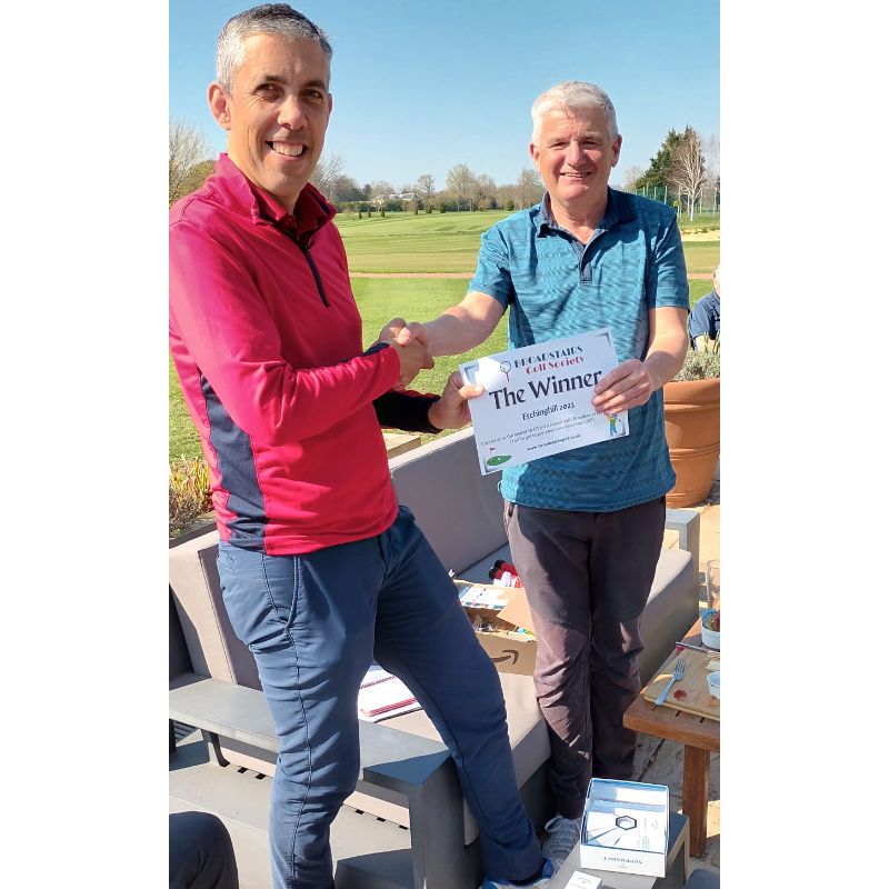 The top two golfers, Gerry & Carl, had to be separated by countback on 32pts, with Carl winning for a 2nd month in a row... The 1st time someone has won two-in-a-row since Carl achieved the same feat in May/June 2019... (It's only the 4th time it's happened since our Stats began 13 years ago... & only once has someone won three in a row!!) Now, how many will we cut Carl's Handicap by ready for next month's game at Sene Valley on Thursday 18th May? [Get it in the diary...]