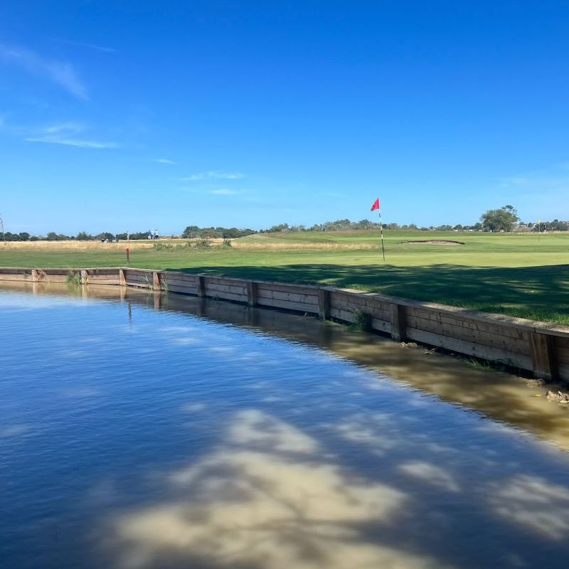 A small but perfectly formed group of 13 headed out early over the Sheppey Crossing to find Sheerness Golf Club nestling serenely amongst a backdrop of Kentish miscellany. Beautifully kept, undulating raised greens lay at the end of often tricky tee shots. Water hazards, ditches and dykes abound, with unforgiving ‘linksy’ rough defining every fairway.