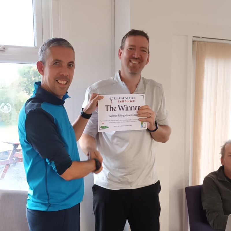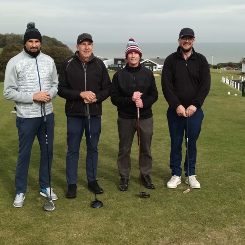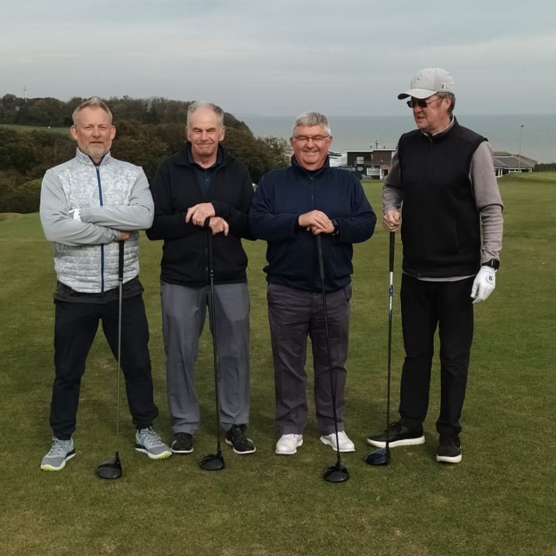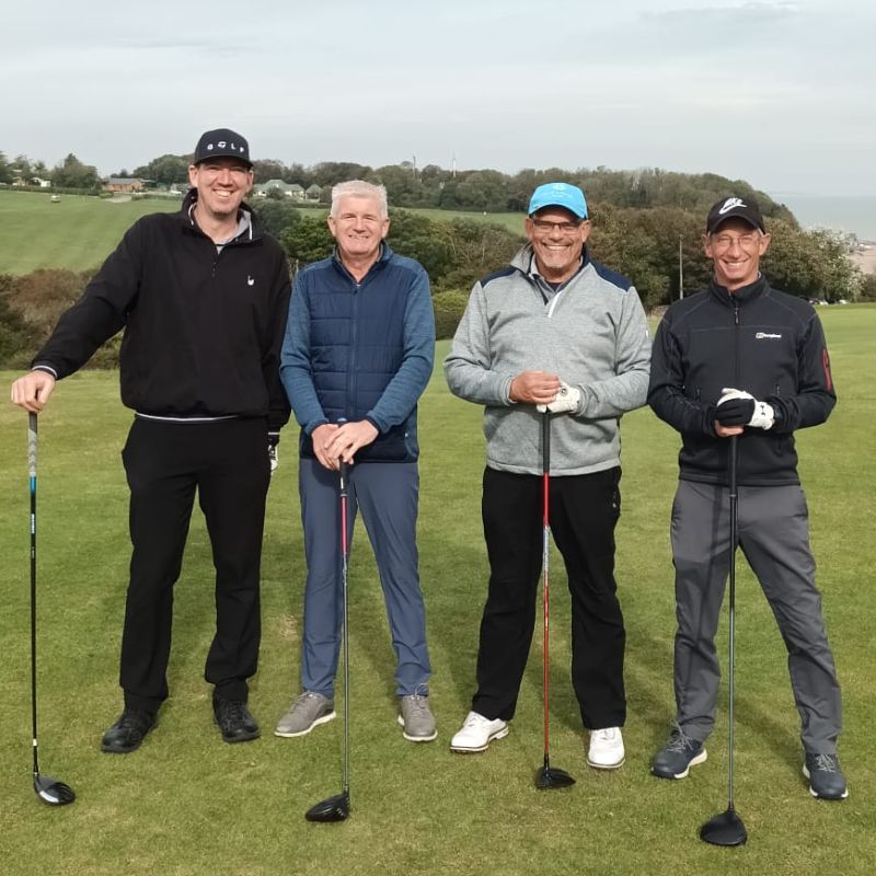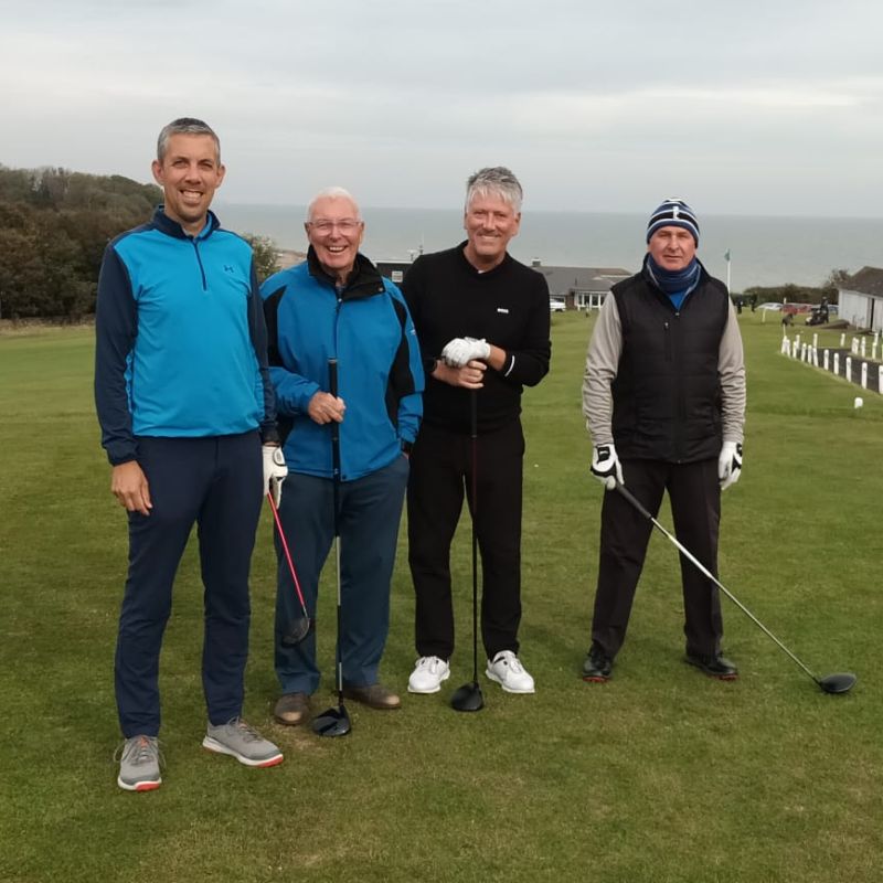 Just one name stands out today, Babet... Four 4-balls bravely faced the on-rushing Storm Babet with a steely look of determination. Those drawn in the first group couldn't hide the smiles on their faces knowing that even if they got wet, there would be 12 others who'd get wetter. But still, they set a good pace & got around within 4 hours, which is pretty impressive for Society golf, amidst Storm Babet, on the cliff tops of Walmer & Kingsdown.