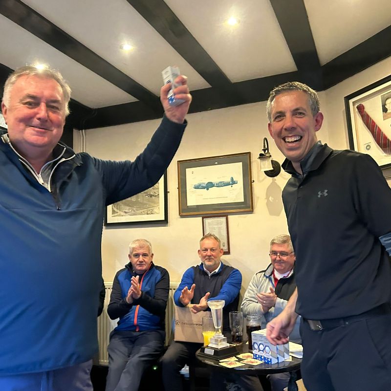 It was no surprise that no one won 'nearest the pin' on the 10th hole, although Alan Garrett drove past the green & then chipped in for his share in the 2's club money. Due to the 1st being a temporary green, we introduced a 'nearest the pin in 2' on the dog-leg 11th hole. The 1st couple of groups had been debating whether 'nearest the green' would be good enough, but alas, Daren Chandler had other ideas and was just 12ft away, which wasn't a bad effort with just one r (not arm!!). Pete Kenehan made a late bid for the King Pin trophy when he won the 13th, although he didn't quite get a 2, it didn't matter as he'd already got into the 2's club on the 7th with a 30ft putt... Rhodri got in on the fun with a great 5 wood which carried onto the 15th green, getting a good-few feet inside Ed Oliver's effort, however Ed wasn't going to be denied as he won the final 'nearest the pin' on the 17th.