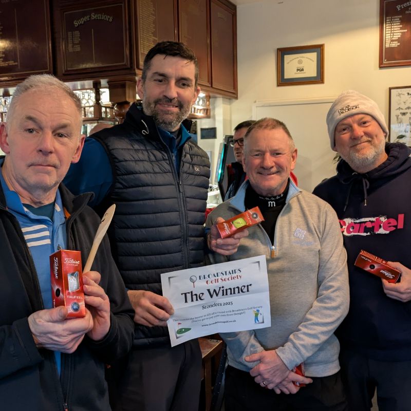 Rhod shared that Carl was rumoured to have fled following further tweaks to the society's Handicap system, but then reassured everyone that we remain the friendliest Golf Society and demonstrated this by giving Big Al a generous few extra shots to match the extra shots his Stonelees mates have enjoyed throughout the past year. Fortunately, the rain had disappeared by the time Rhod had shared way too many stats, & explained today's team comp as well as the return of the 'Best Visitor' comp (2 guests today: hope you had a good time Steve & Paul (Smoggie).